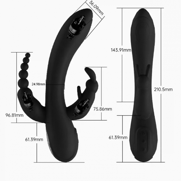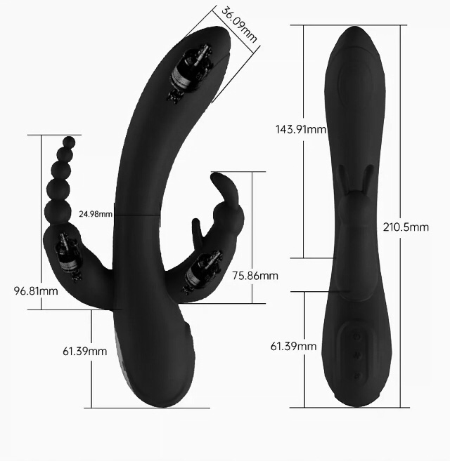 Вибратор тройной, имеет три вибромоторчика: клитор, вагина, анус, аккумуляторный (заряжается от usb), покрыт приятным на ощупь силиконом