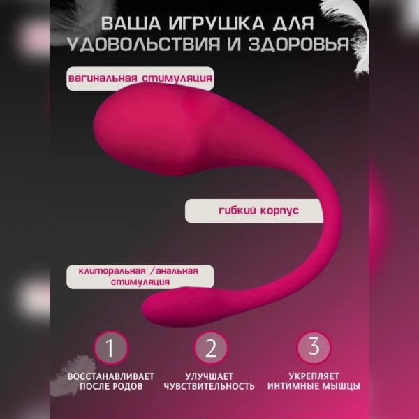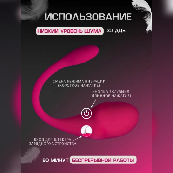 Виброяйцо с гибким хвостиком, аккумуляторный (заряжается от usb), управление через телефон (приложение love spouse), для ношения под нижним бельём, ссылка на видео https://vk.com/wall435685790_270