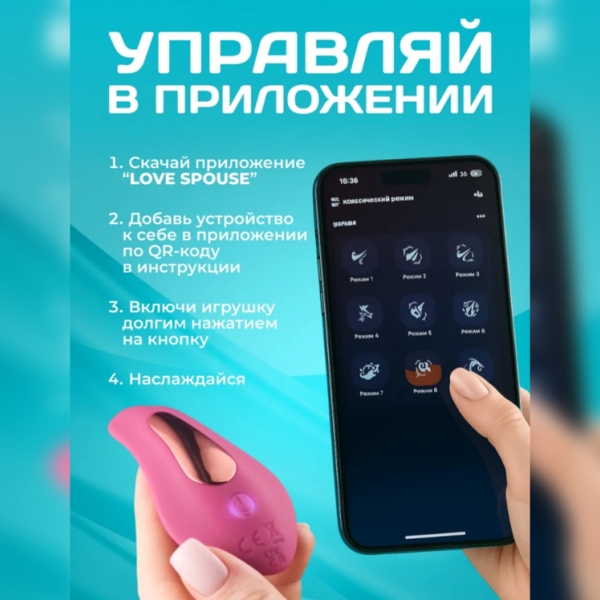 Вибратор для ношения под одеждой, маленький (длина 8см, ширина 3-4см) аккумуляторный, заряжается от usb, управление через приложение на телефоне, покрыт приятным на ощупь силиконом, ссылка на видео https://vk.com/wall1086189147_102