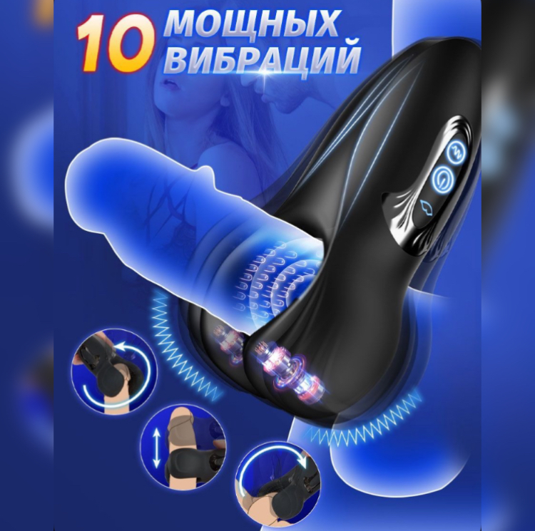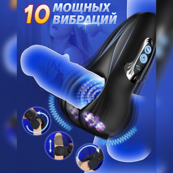 Мастурбатор массажер для мужчин, 10 режимов вибрации + 10 режимов массажа (сжимает/разжимает обхват с разной скоростью), ссылка на видео https://vk.com/wall1086189147_110