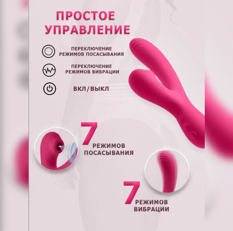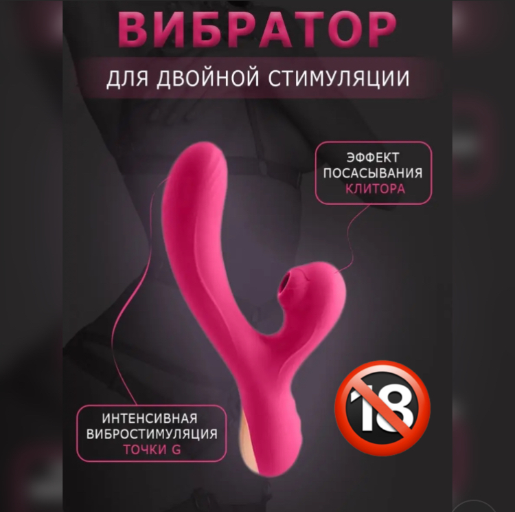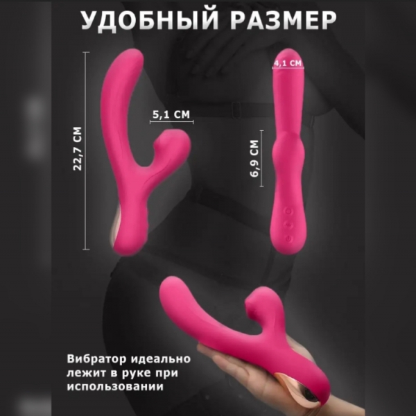 Вибратор кролик с двойной стимуляцией (точки G и клитора), аккумуляторный (заряжается от usb), несколько режимов вибрации и вакуума