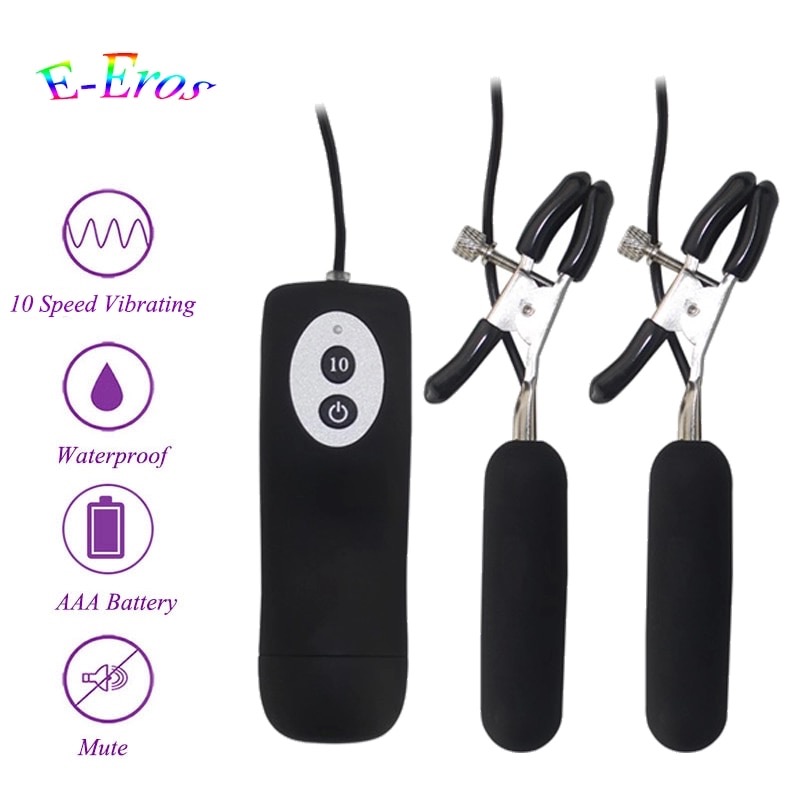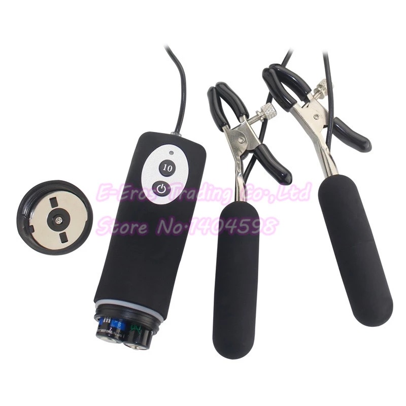 Зажимы для сосков с вибрацией, сила зажима регулируется, в наличии 2 цвета: чёрный и розовый, работает от двух мизинчиковых батареек
