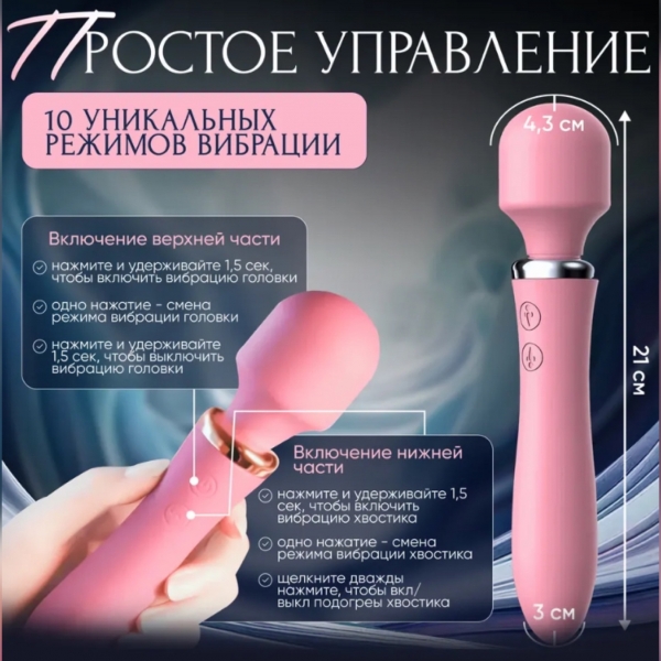 Вибрация на обеих сторонах, каждая управляется отдельно, аккумуляторный (заряжается от usb), покрыт приятным силиконом, ссылка на видео https://vk.com/wall435685790_267