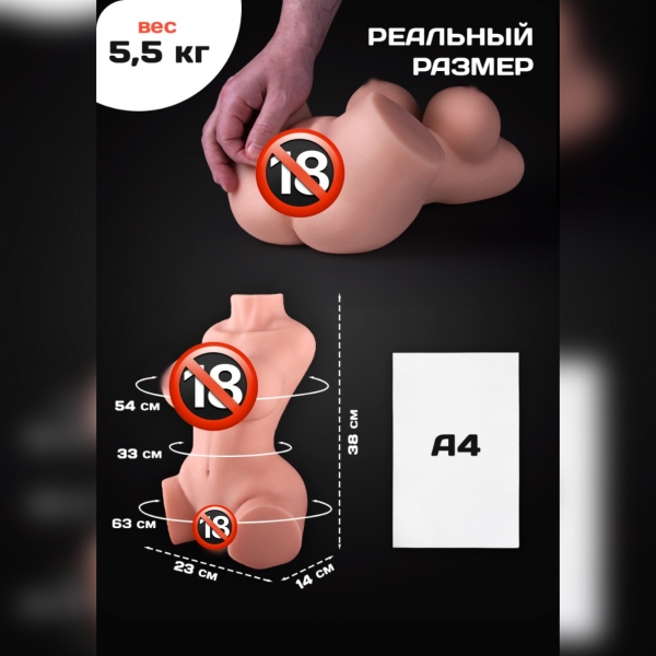 Мастурбатор силиконовый с двумя входами, высота 35см